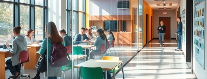 Las aulas con planos transparentes facilitan la proyección de la actividad docente al exterior. En la imagen, aula de la Universidad de Stanford (EE.UU.)