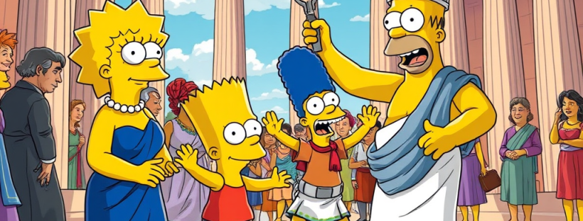 Los Simpson, la popular serie de televisión que anima nuestras pantallas, contiene numerosas y divertidas alusiones a motivos de tradición clásica, por lo general en forma de parodia. Si somos capaces de reconocerlas, sin duda disfrutaremos más del fino humor que caracteriza a sus personajes.