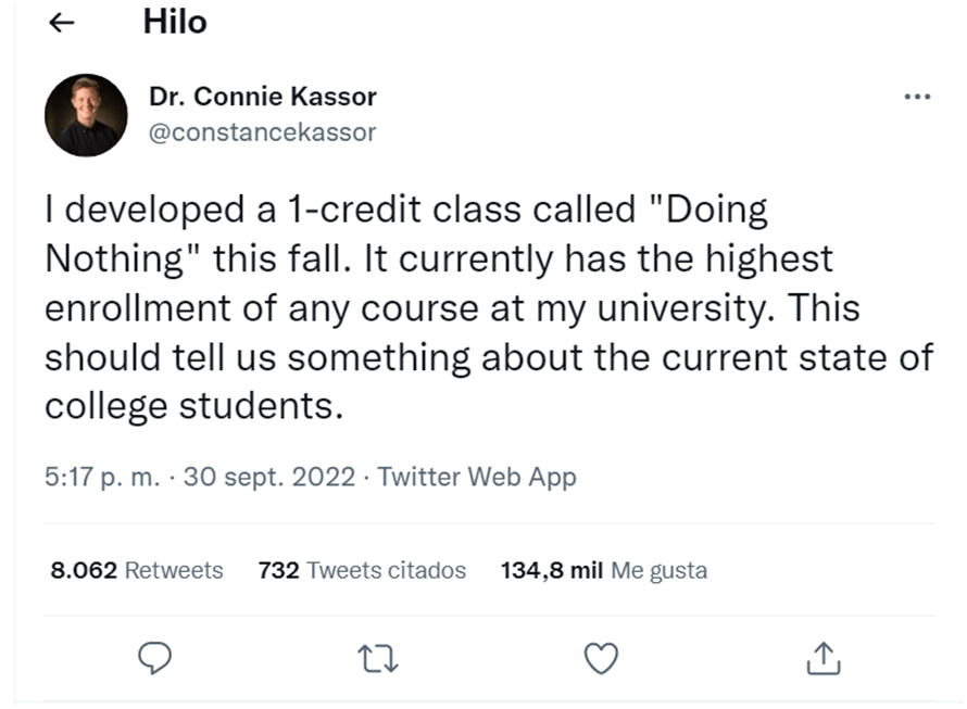 El profesor Kassor ha publicado recientemente un tuit sobre el curso, lo que provocó un encendido debate sobre lo que necesita el alumnado y lo que las Universidades deberían enseñar. El tuit se volvió viral, atrayendo más de 134.000 me gusta y 8.000 retuits.