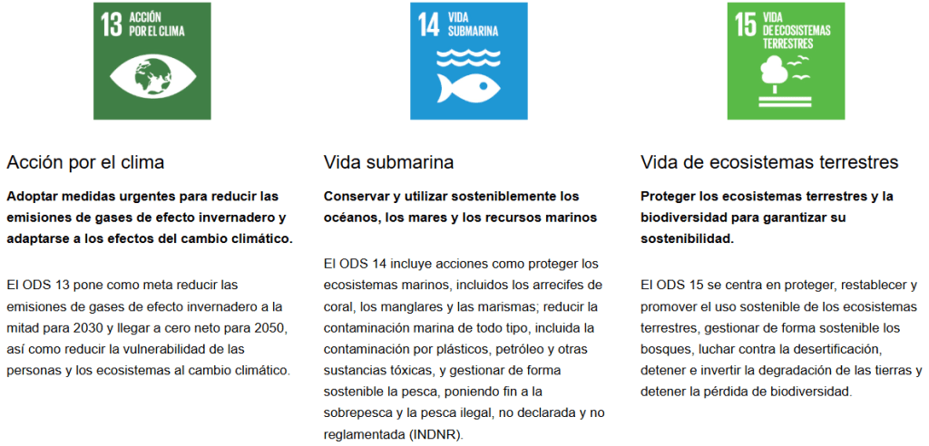 - Objetivos ambientales: se centran en proteger el planeta, como la lucha contra el cambio climático, la conservación de la biodiversidad y el desarrollo sostenible.