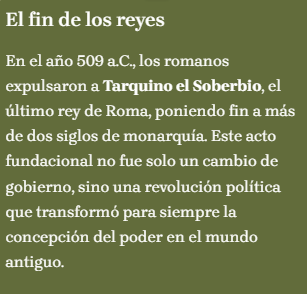 Sobre las ruinas de la monarquía, Roma erigió un sistema republicano basado en la soberanía compartida, la separación de poderes y la primacía de la ley. Desde una modesta ciudad en las orillas del Tíber, la joven república comenzó su imparable ascenso hacia la hegemonía mediterránea.