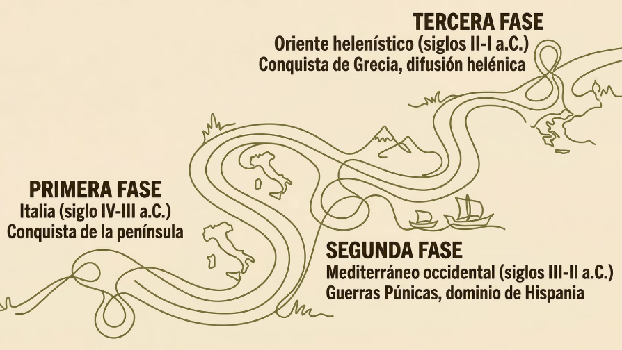 Durante los siglos de la República, Roma transformó su modesto territorio itálico en el mayor imperio del mundo antiguo mediante una combinación de disciplina militar, habilidad diplomática y asimilación cultural.