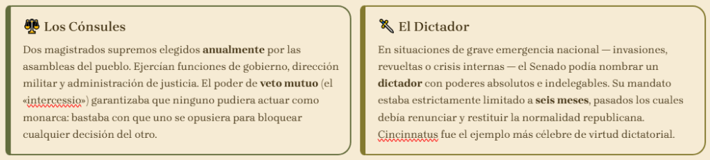 El sistema político romano se completaba con una serie de magistraturas especializadas que garantizaban el funcionamiento cotidiano del Estado, cada una con competencias bien delimitadas.