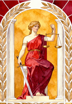 La balanza en la antigua Roma, vinculada al concepto de iustitia (justicia), simbolizaba la equidad, el equilibrio y la imparcialidad en la administración del derecho. Este instrumento de dos brazos iguales representa la ponderación de las pruebas y argumentos de cada parte para dar a cada uno lo que es justo.